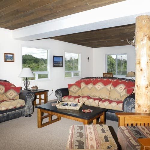 Piedra Pines provides 3 stories and 7,400 square feet of comfortable Santa Fe style living. It features 7 cozy bedrooms and bathrooms (two rooms with fireplaces and three with private balconies). A game room/bunk room with 3 bunk beds and dorm style bathroom. Piedra Pines has a full kitchen and two living areas (one with a fireplace). For your convenience, other amenities include satellite TV and a washer and dryer.
